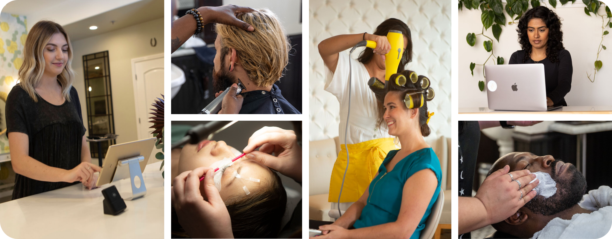 A collage demonstrating the capabilities of Mindbody beauty software.